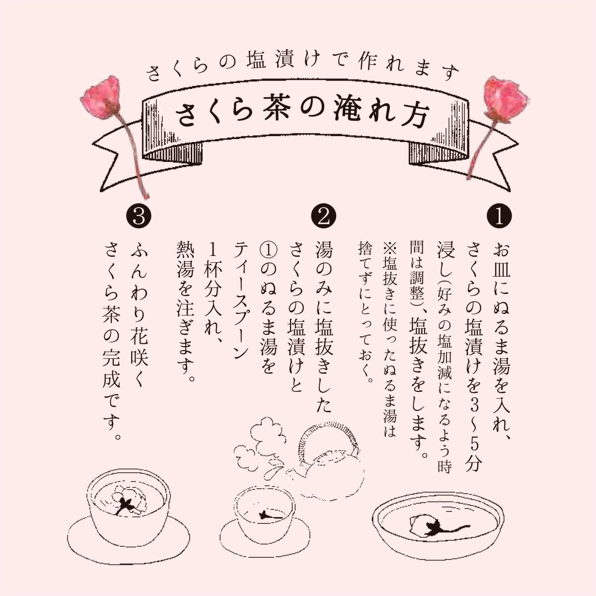 「さくらの塩漬け」は表面の塩を水で洗って梅干に添えれば、見た目や味わいに一層華やかな春を演出。 また「さくら茶」としてもお愉しみいただけます。 春限定、石神邑自慢の梅干を、ぜひご堪能ください。