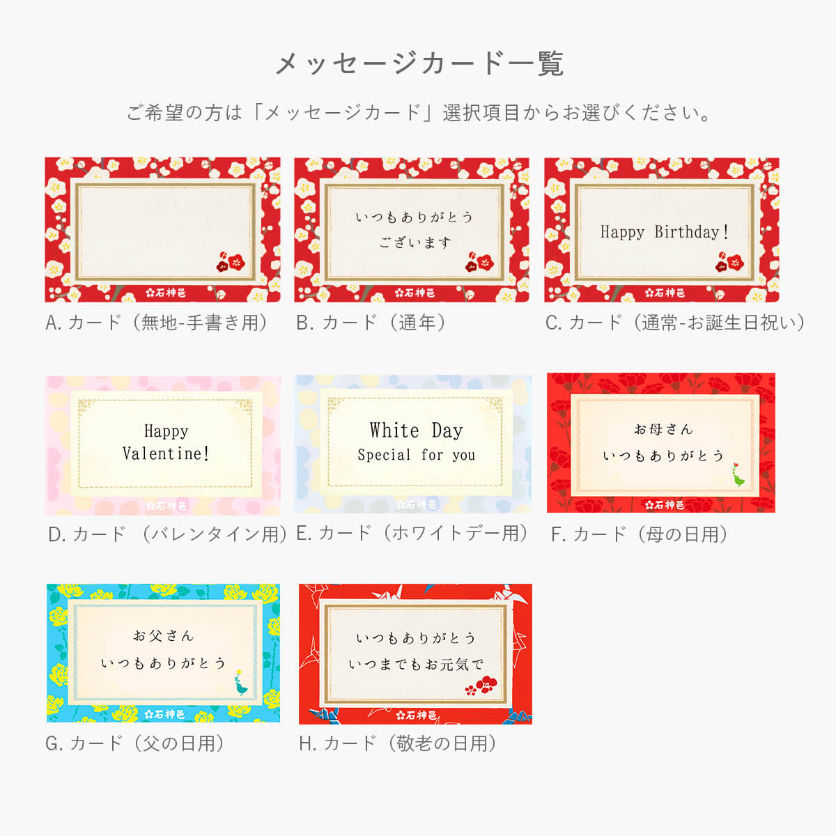 ※梅干1個単品、梅酒ミニボトル90mlの商品はメッセージカードをおつけできません。