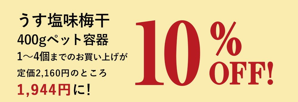 石神邑人気の「はちみつ梅干」ペット容器400gと、まろやかな酸味とほのかな甘さがとけあう味わい「うす塩味梅干」ット容器400gを、お得な割引価格でご用意しました。組み合わせは自由ですのでお好きな梅干をご希望の個数で組み合わせて、この機会にぜひお買い求めください。 「はちみつ梅干」ペット容器400gはこちら