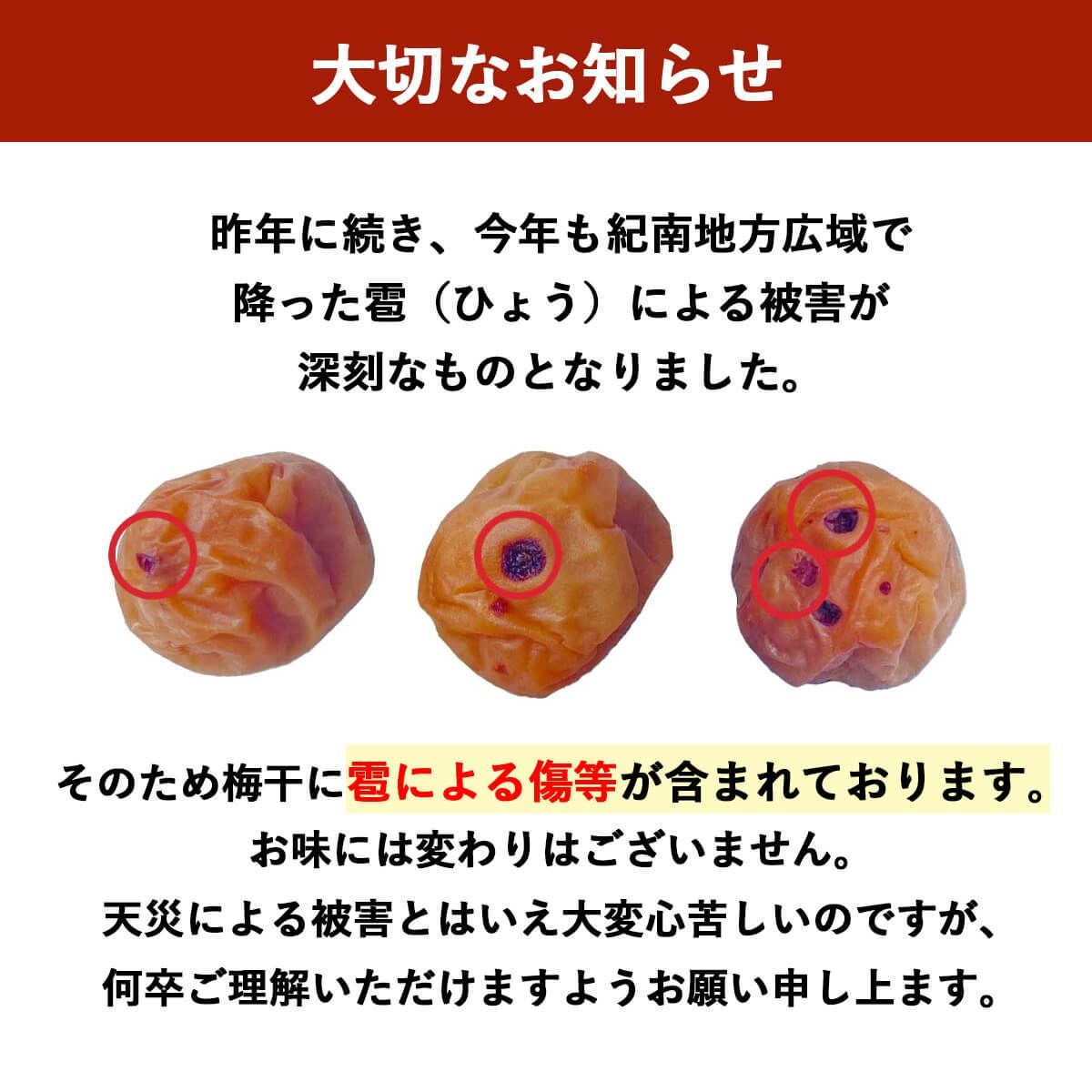 世界農業遺産に認定された紀州産の南高梅を減塩仕上げにつけ込みました。大粒で皮が薄く、果肉が厚く柔らかいのが特徴。ご家庭用はもちろん、ギフトにもおすすめです。