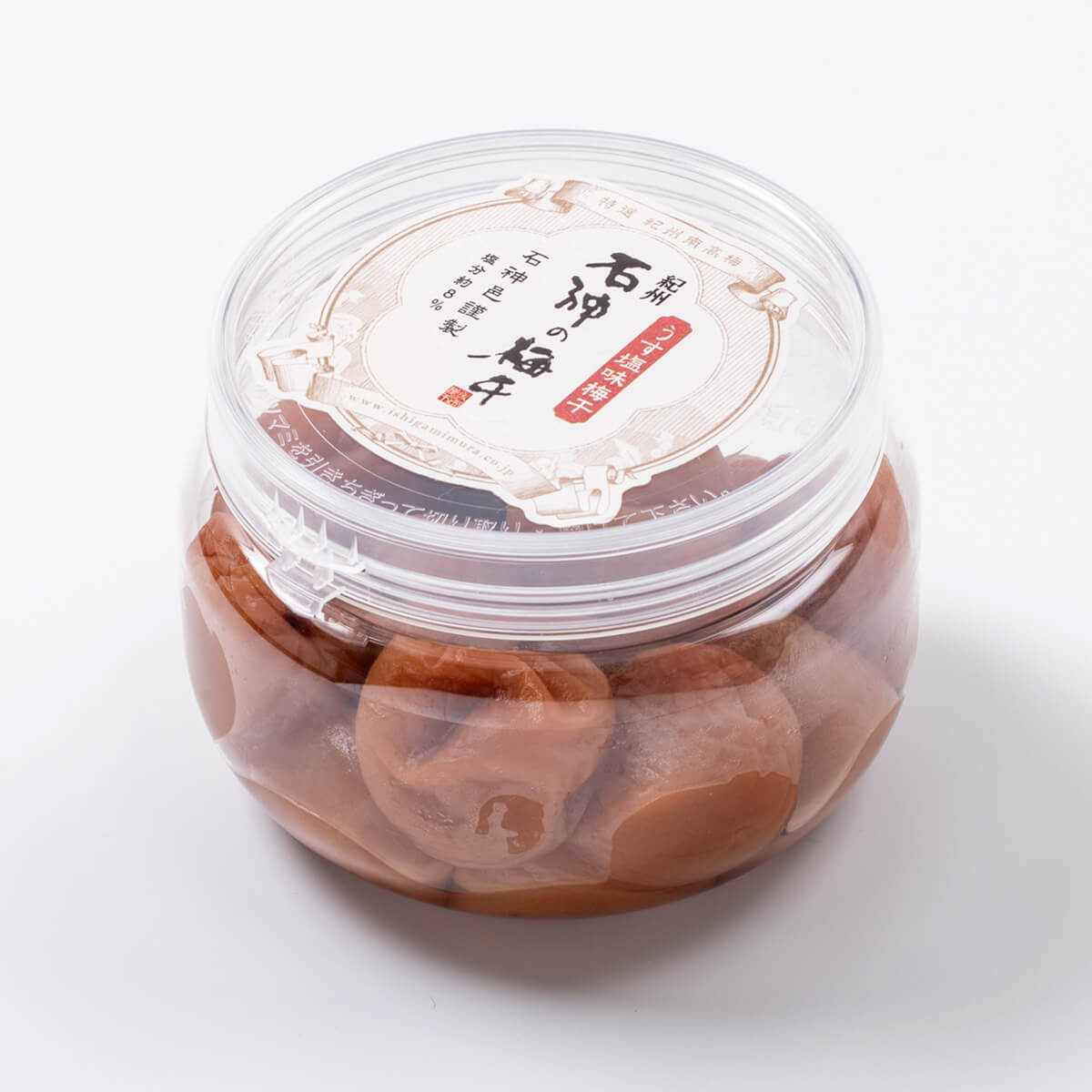 大粒の南高梅をうす塩で漬け込みんだ石神定番の梅干。 まろやかな酸味とほのかな甘さがとけあう味わい、大粒ならではのたっぷりの果肉。 減塩仕上げなので塩分が気になる方、お子様のいらっしゃるご家庭にも好評です。